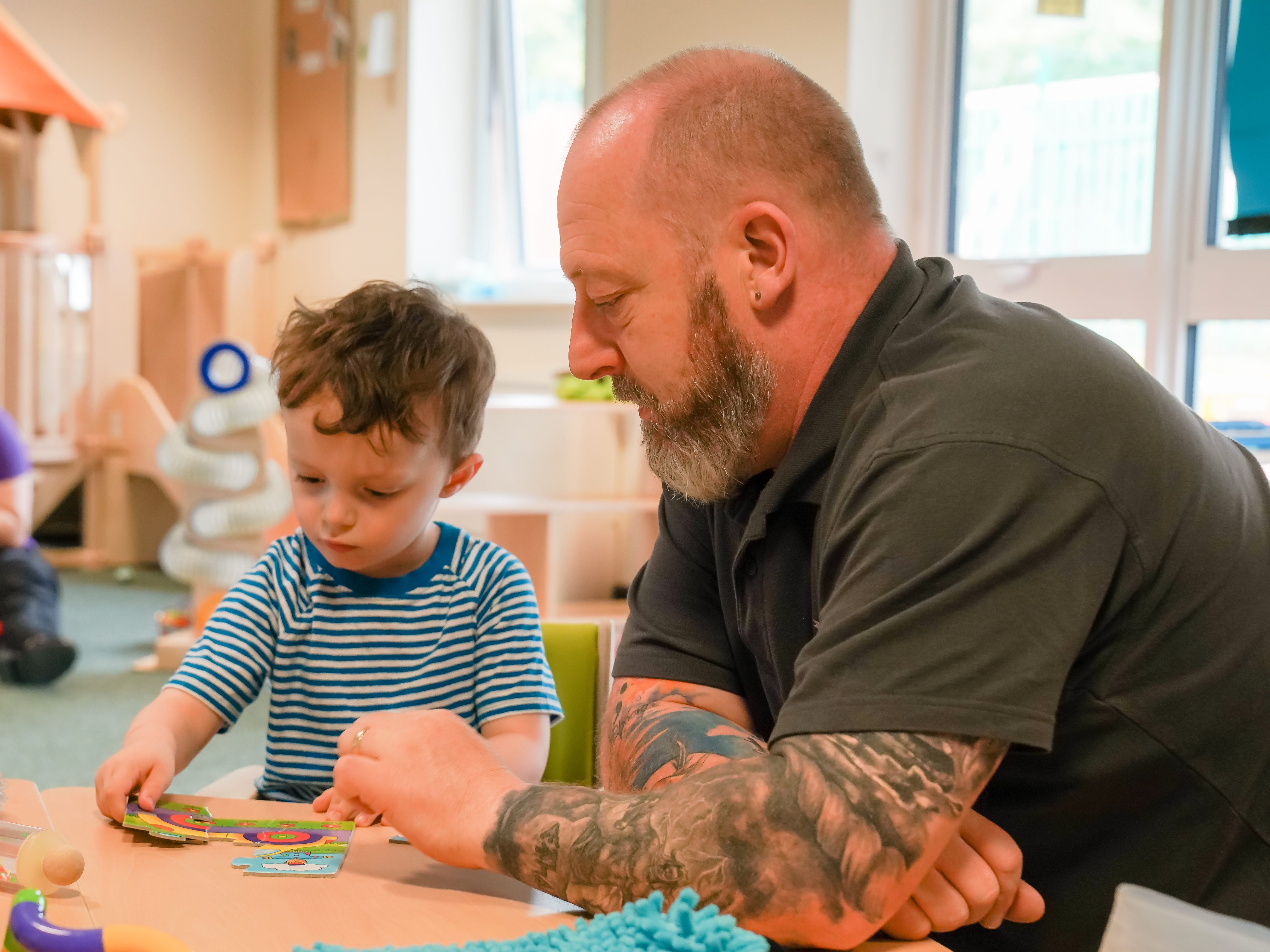 My son is a Peter Pan graduate. My lived experience with him and his needs made me realise that there is a massive shortage of men in early years settings. When Jayden moved on to school, I started volunteering at Peter Pan, which then led me to the role I have now.